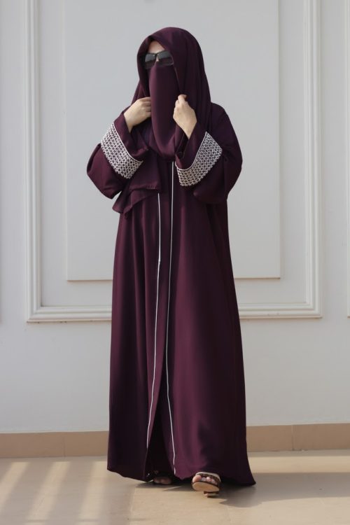 Maroon Front Open Abaya