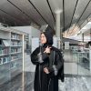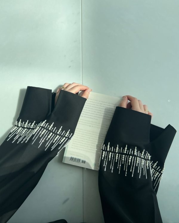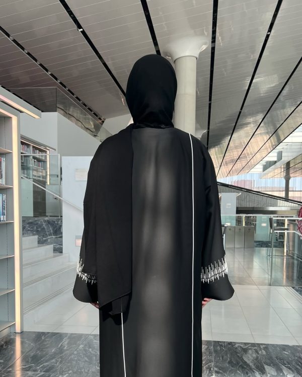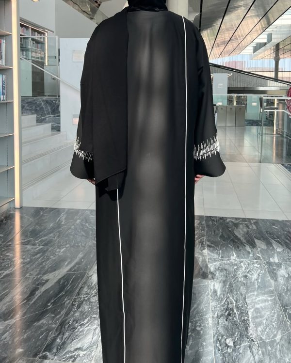 • A front open abaya with buttons with handwork on the sleeves