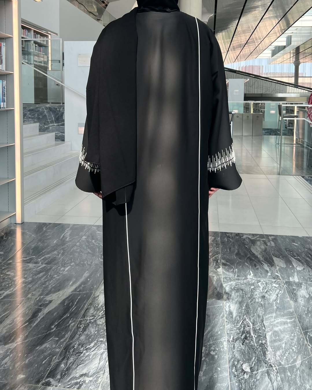 - A front open abaya with buttons with handwork on the sleeves